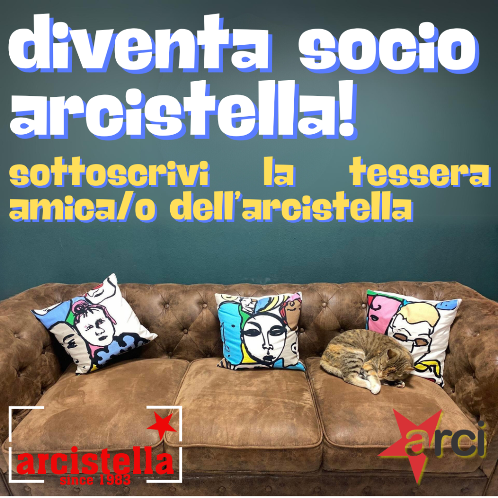Sottoscrivendo la tessera “amica/o dell’Arcistella” a soli 35 €, potrai accedere ai concerti esclusivi dei Meganoidi, Shandon e Diaframma senza ulteriori contributi.